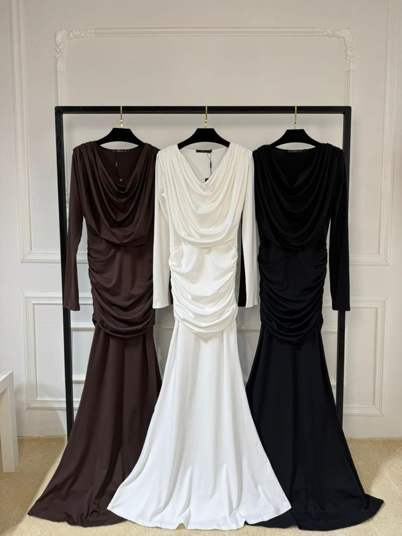 Платье с изящными сборками на плечах и бедрах. Акцентирует женственность и создаёт эффектный силуэт. Идеальный выбор для торжеств и вечеров
