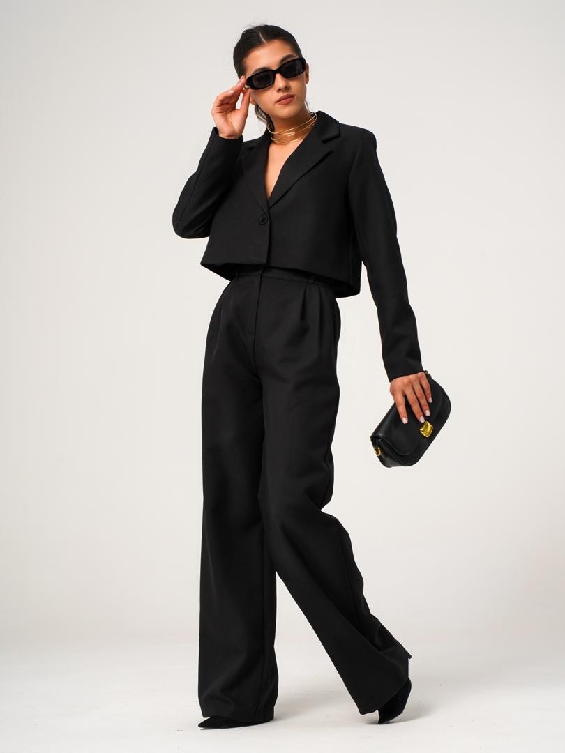 Брюки палаццо и короткий пиджак