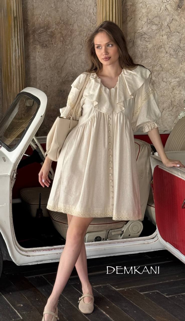 Лёгкое и воздушное платье из натурального льна с объемными рукавами оптом из Киргизии, Бишкек